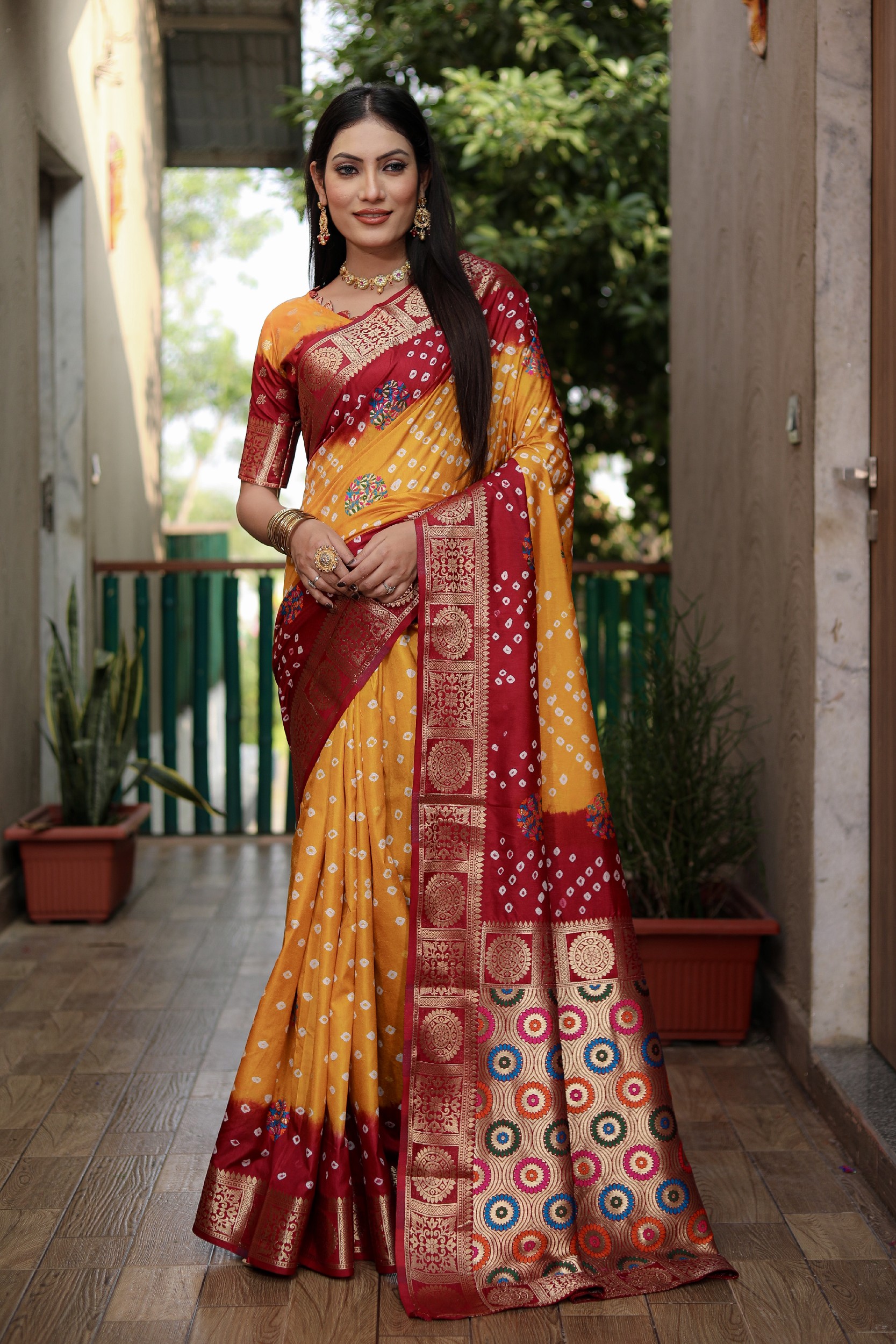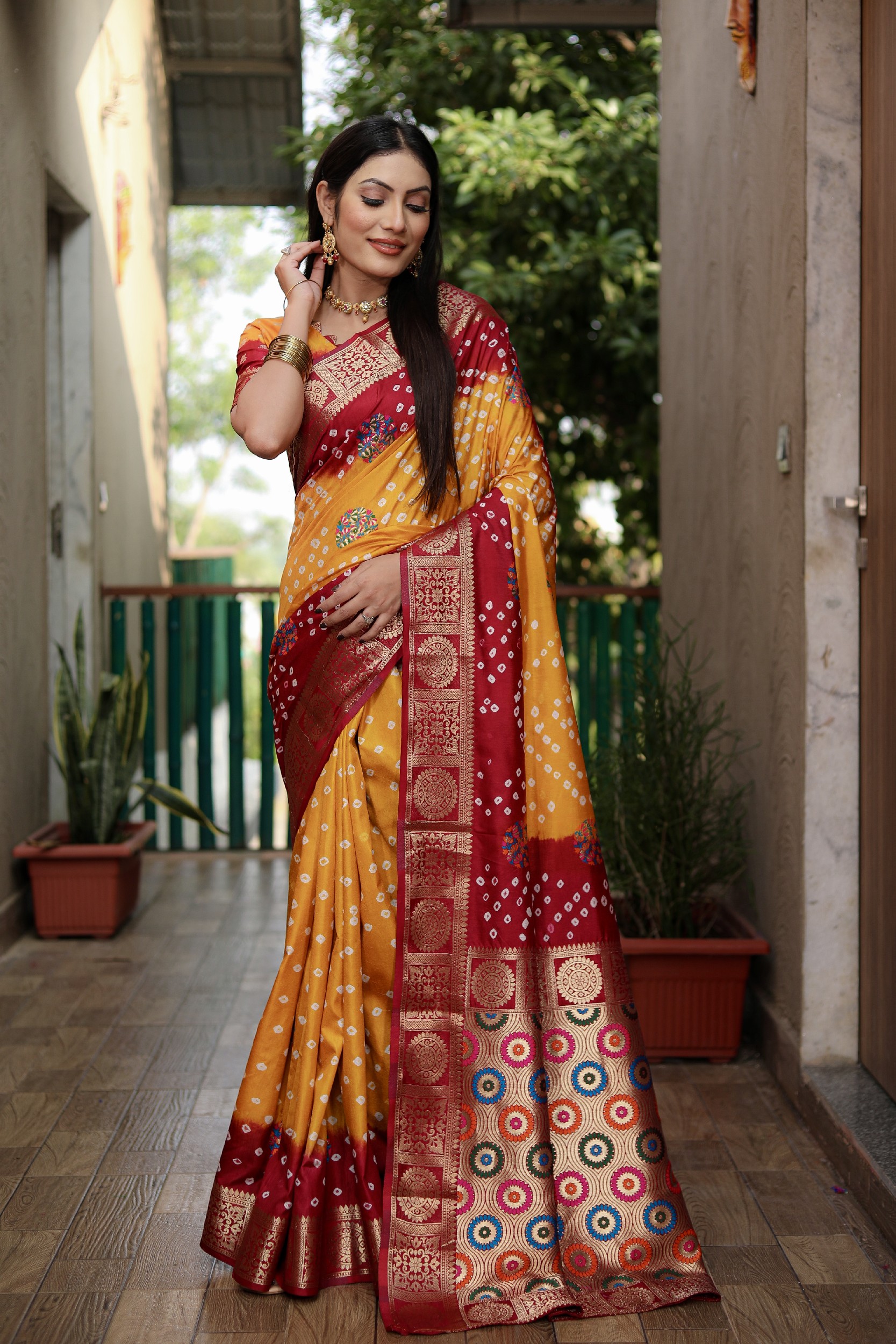🎀New Premium And High Quality,ComfortableBandhej Silk Drapes That Is Super
